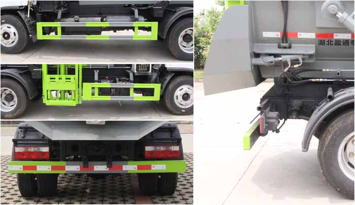 東風(fēng)餐廚垃圾車,藍(lán)牌餐廚垃圾車,廚后垃圾車,餐廚掛桶式垃圾車,多利卡自裝卸垃圾車,該車用于餐廚垃圾收集清運(yùn),主要專用裝置為垃圾收集箱和提升機(jī)構(gòu).側(cè)、后防護(hù)材料均為:Q235碳鋼,側(cè)防護(hù)采用螺栓連接,后防護(hù)采用焊接連接,后部防護(hù)截面尺寸(mm):120×50,后部防護(hù)離地高度(mm):430.ABS型號(hào)/廠家:ABS/ASR-12V-4S/4M/襄陽東風(fēng)隆誠(chéng)機(jī)械有限責(zé)任公司,僅采用底盤3308mm軸距改裝.選裝側(cè)面樣式. |
