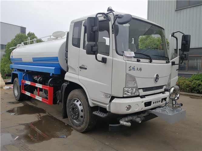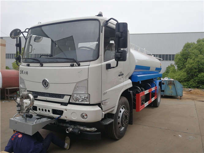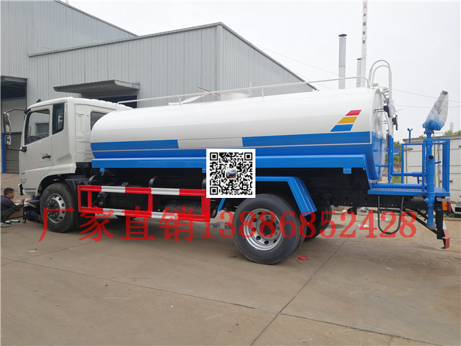灑水車前裝有鴨嘴形噴嘴或圓錐形沖嘴,后面裝有圓柱形灑水噴嘴或蓮蓬頭噴嘴,后部有工作平臺(tái),裝配有水炮。后還可裝8個(gè)噴嘴。