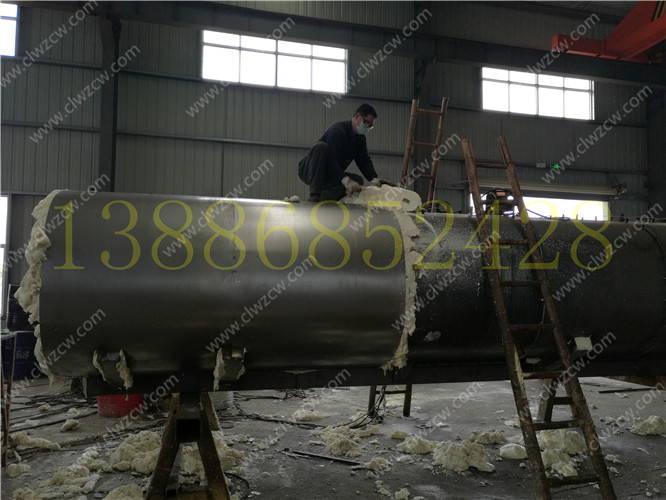 3. 保層溫的制作是在水罐外部另外焊接10mm厚的支撐骨架,然后用保溫材料將骨架內部填充滿,最后在骨架外蒙上一層外皮。 保溫層外表鐵皮采用8mm厚高強度耐磨板,可選擇使用不銹鋼分鏡面8K或磨砂板