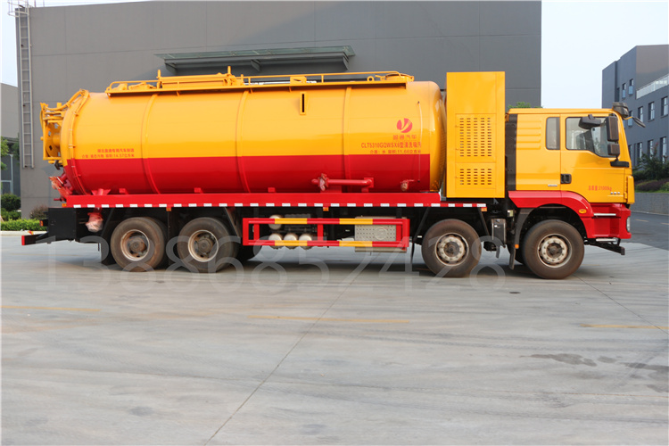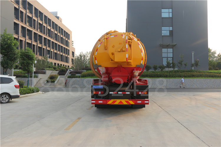 該車用于清洗吸污,主要專用裝置為罐體及清洗吸污裝置;罐體尺寸為(直段長×直徑)(mm):7100×2350(前部3150mm為清水罐,后部3950mm為污水罐);污水罐有效容積14.57立方米,介質(zhì):液態(tài)污物,密度:800千克/立方米;清水罐有效容積11.66立方米,介質(zhì):水,密度:1000千克/立方米,兩罐獨(dú)立,且不能同時(shí)滿載,清洗功能時(shí)用清水罐,吸污功能時(shí)用污水罐;隨底盤選裝駕駛室,選裝罐體側(cè)部樣式及后部樣式;卸料方式為舉升后卸式;側(cè)、后防護(hù)材料均為Q235,連接方式:螺栓連接。后防護(hù)截面尺寸(mm)200×60,下邊緣離地高480mm;ABS系統(tǒng)生產(chǎn)廠家及型號分別為:西安正昌電子股份有限公司(型號:ZQFB-V),廣州瑞立科密汽車電子股份有限公司(CM4XL-4S/4M)。選裝前部不帶卷簾門保護(hù)箱。 |