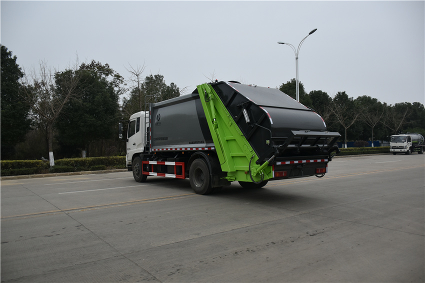 東風壓縮垃圾車,壓縮對接式垃圾車,天錦壓縮垃圾車,壓縮垃圾站,該車主要專用裝置由箱體、壓縮系統組成,用于垃圾的收集與清運;隨底盤選裝駕駛室;安裝無翻轉機構時無后伸,選裝翻桶裝置,翻斗裝置時,后伸380mm,選裝密封斗,擺臂裝置時,后伸280mm;整車長度/軸距/后伸對應關系(mm):8670/4500/無后伸,8950/4500/后伸280,9050/4500/后伸380,8870/4700/無后伸,9150/4700/后伸280,9250/4700/后伸380,側面防護材料為:Q235碳鋼,連接方式為:焊接連接,后部防護為專用裝置代替,后部防護離地高度(mm):430;ABS型號/生產廠家:3631010-C2000/東科克諾爾商用車制動系統(十堰)有限公司,ABS 8/東科克諾爾商用車制動系統(十堰)有限公司, 4460046450/威伯科汽車控制系統(中國)有限公司,J ABS/焦作博瑞克控制技術有限公司;選裝直接供電ETC車載裝置;僅采用發動機型號/油耗值(L/100km):DDi50E190-60/23.9,D4.5NS6B190/24.4,D6.7NS6B230/23.7,B6.2NS6B210/23.8,B6.2NS6B230/23.8,DDi50E220-60/25.1,D4.0NS6B185/26.7。該車安裝具有衛星定位功能的行車記錄儀。