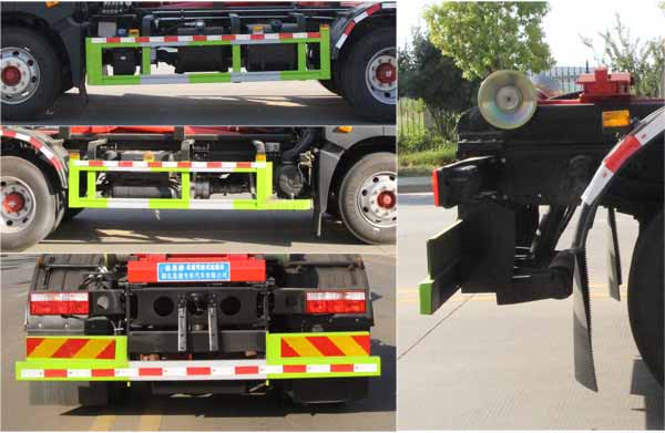 該車主要用于垃圾轉運,專用裝置為勾臂./后部防護裝置材料:Q235碳鋼,連接方式均為:螺栓連接;后防護截面尺寸120×50mm,后部防護離地高度(mm):480.ABS系統生產廠家,型號 :焦作博瑞克控制技術有限公司,J ABS;襄陽東風隆誠機械有限責任公司,ABS/ASR-24V-4S/4M.安裝具有衛星定位功能的行駛記錄儀.發動機型號與油耗值對應關系為(L/100km):B6.2NS6B210/26.1,D4.5NS6B220/26.3,D4.0NS6B195/26.4,YCS04200-68/26.5,CY4SK761/26.3,B6.2NS6B230/26.1,YCY30165-60/23.1.該車可選裝直接供電式ETC車載裝置.僅采用底盤4700mm,4500mm,3950mm軸距改裝.隨底盤選裝燃油箱,電瓶,尿素罐,儲氣筒左右安裝位置.隨底盤選裝限速裝置,限速89km/h.