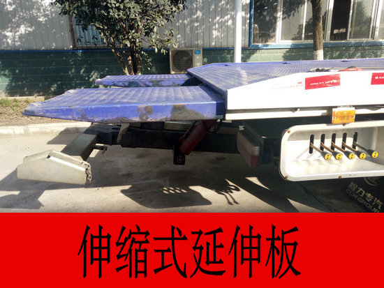 1.平板長度為:4.2米加上0.9米折疊板,寬均為2.35米,3P2A碳鋼板沖壓瓦楞型防滑板,平板帶有鎖止機構(gòu),平板及后拖臂均為雙側(cè)聯(lián)動操作;