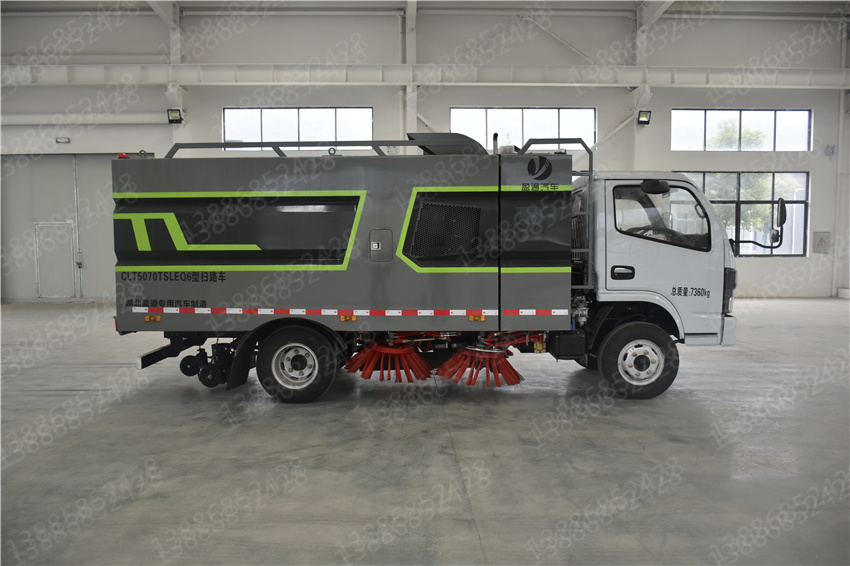 東風掃路車,福瑞卡掃路車,國六掃路車,掃路車價格,掃路車廠家 ,掃路車報價,馬路清掃車,該車主要作用于路面的清掃作業;專用裝置為清掃裝置、垃圾箱。ABS型號/廠家:ABS/ASR-12V-4S/4M/襄陽東風隆誠機械有限責任公司;側防護裝置為專用裝置代替,后防護材料均為:Q235碳鋼,連接方式為:螺栓連接,后部防護截面尺寸(mm):120×50,后部防護離地高度(mm):370.隨底盤選裝駕駛室。選裝燃油箱,電瓶,尿素罐,儲氣筒左右安裝位置。