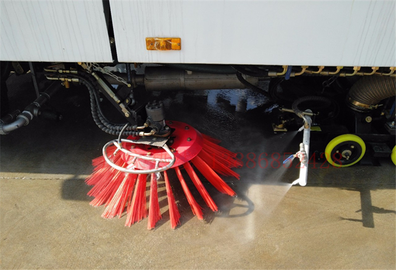 16、吸盤(pán)內(nèi)有高壓噴水裝置,噴嘴布置在吸盤(pán)內(nèi)部,能最大限度沖洗路面。左右高壓噴水支架安裝在吸盤(pán)上,隨吸盤(pán)升降,結(jié)構(gòu)簡(jiǎn)單緊湊,保證噴水支架達(dá)到最佳的沖洗效果。